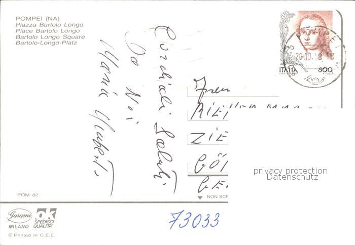old postcard Pompei Bartolo- Longo- Platz postalisch gelaufen Erhaltung siehe scans