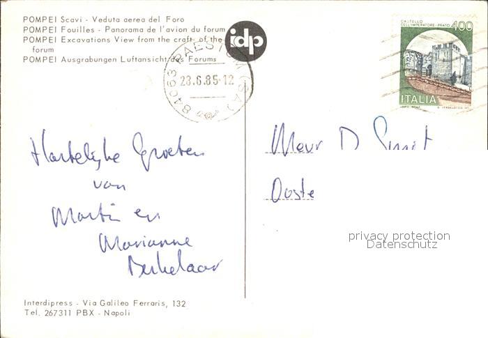 old postcard Pompei Luftbild Forum postalisch gelaufen Erhaltung siehe scans