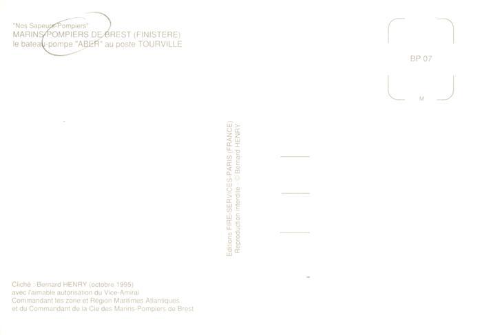 73915554 Pompiers Bomberos Feuerwehr Fire-Brigade Finistere Aber Tourville postalisch nicht gelaufen Erhaltung siehe scans [IrynaD87] KatCode: 22060000006700
