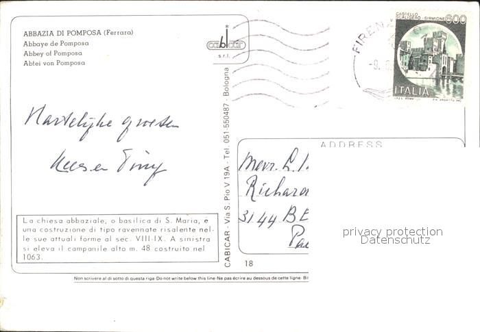 old postcard Pomposa Die Abtei postalisch gelaufen Erhaltung siehe scans