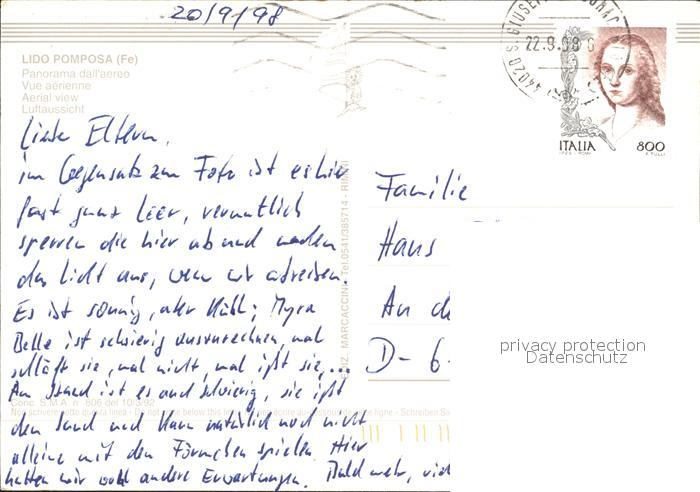 old postcard Pomposa Lido Riviera Adratica dal cielo postalisch gelaufen Erhaltung siehe scans