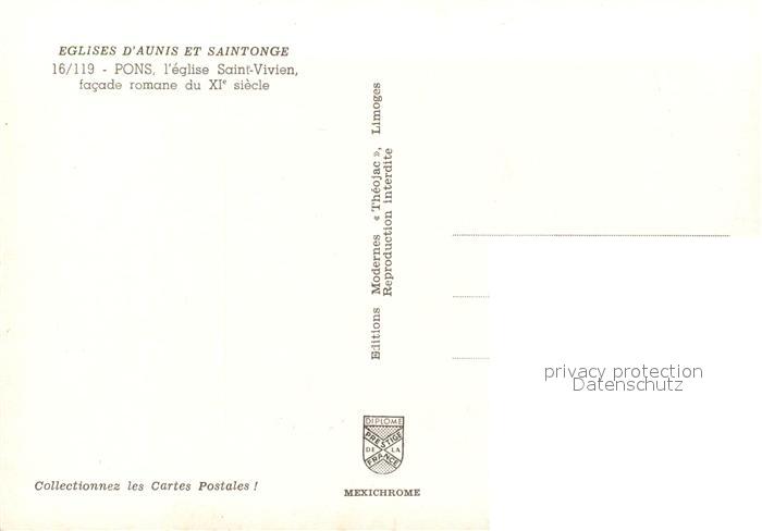 13525630 Pons Eglise Saint Vivien facade romane du XIe siècle postalisch nicht gelaufen Erhaltung siehe scans [FriedD77] KatCode: 11170017417283