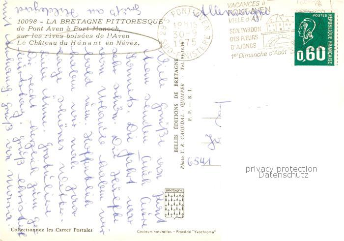 13797116 Pont-Aven a Port Manech sur les rives boisees de l’Aven Le Chateau du Henant en Nevez Vue aerienne postalisch gelaufen Erhaltung siehe scans [WerneD78] carte postale Wern Katcode 11170029429217