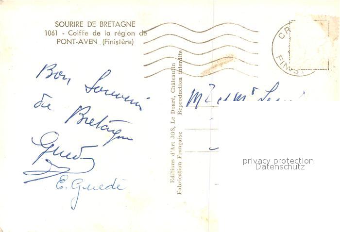 13582021 Pont-Aven Coiffe de la région Costumes Trachten postalisch gelaufen Erhaltung siehe scans [FriedD77] carte postale Frie Katcode 11170029429217