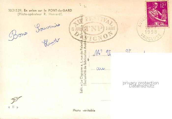 13801930 Pont-du-Gard 30 Gard En avion sur le Pont du Gard postalisch gelaufen Erhaltung siehe scans [WerneD78] carte postale Wern Katcode 11170030230346