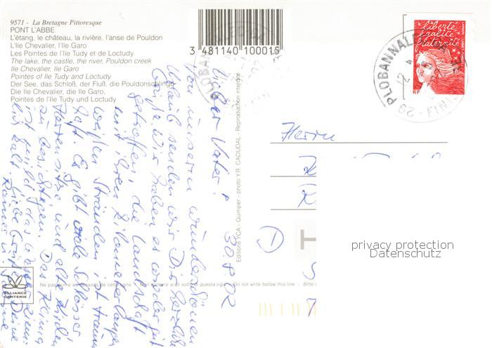 13788908 Pont-l Abbe 29 Finistere Etang Chateau Rivière Anse de Pouldon Ile Chevalier Ile garo vue aérienne postalisch gelaufen Fliegeraufnahme Erhaltung siehe scans [FriedD77] Fliegeraufnahme carte postale Frie Katcode 11170029429220