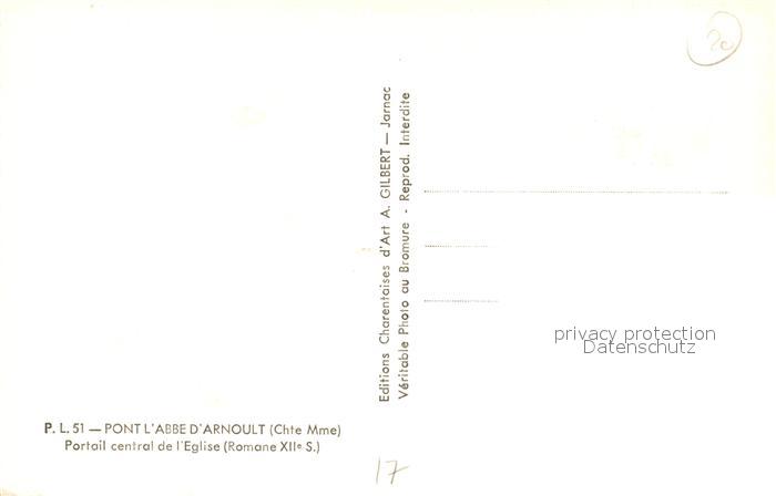 13494912 Pont-l Abbe-d Arnoult Portail central de l’Eglise romane XIIe siècle postalisch nicht gelaufen Erhaltung siehe scans [FriedD77] KatCode: 11170017417284