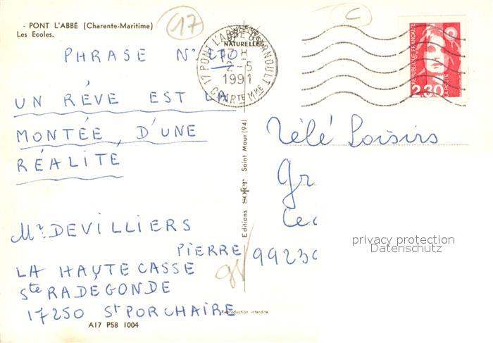 13146811 carte postale Pont-l Abbe Fliegeraufnahme Les Ecoles postalisch gelaufen Erhaltung siehe scans [LiesaD40] KatCode: 11170029429220