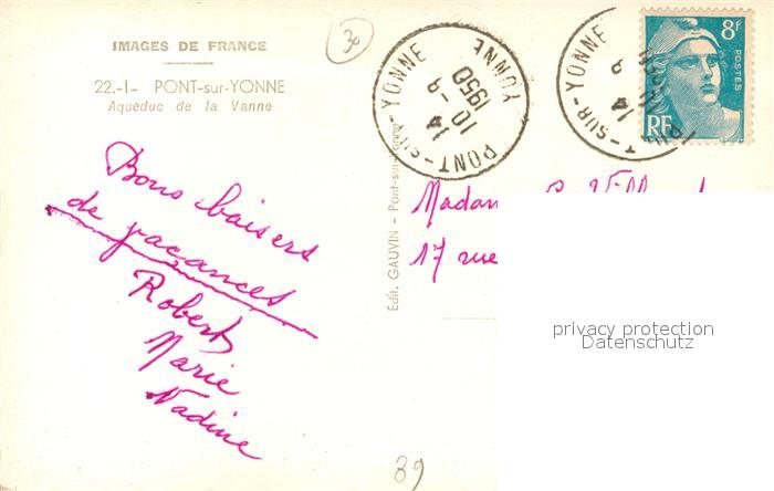 13485981 carte postale Pont-sur-Yonne Aqueduc de la Vanne postalisch gelaufen Erhaltung siehe scans [WerneD78] KatCode: 11170089389309
