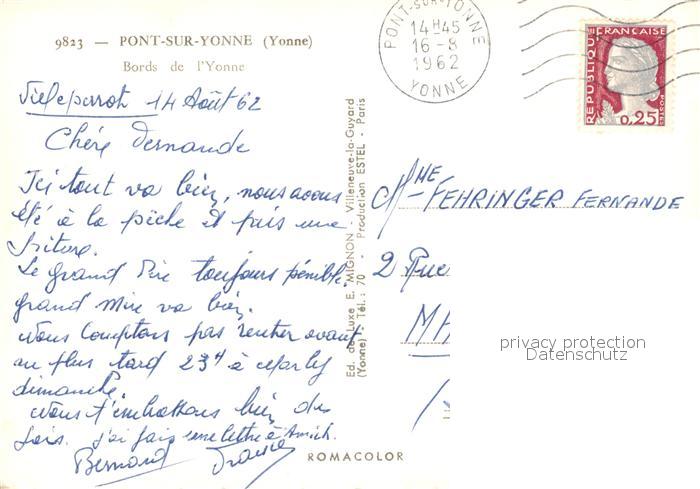 13590846 Pont-sur-Yonne Bords postalisch gelaufen Erhaltung siehe scans [KathaD81] carte postale Kath Katcode 11170089389309