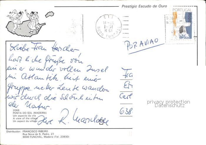 old postcard Ponta do Sol Um aspecto da vila postalisch gelaufen Erhaltung siehe scans