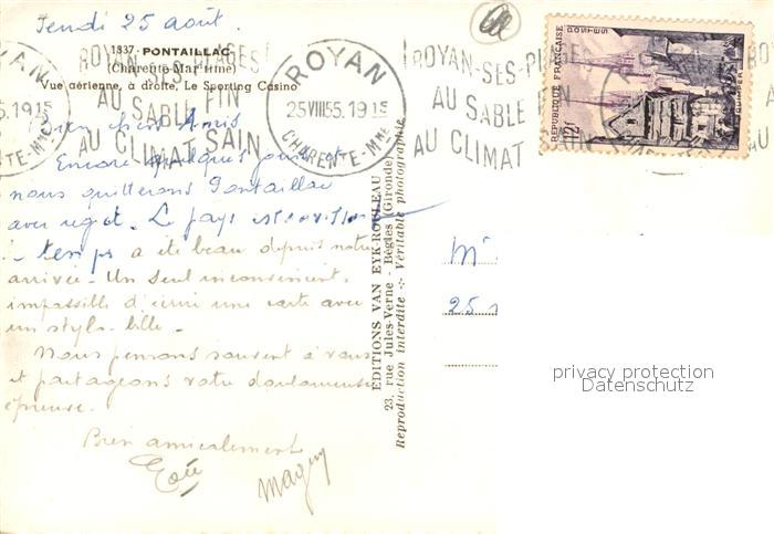 13522094 carte postale Pontaillac Fliegeraufnahme mit Strand Sporting Casino postalisch gelaufen Erhaltung siehe scans [LiesaD40] KatCode: 11170017317300