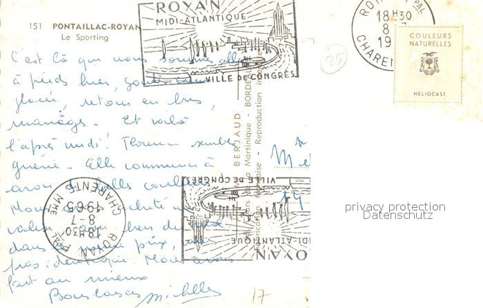 13494951 carte postale Pontaillac Le Sporting postalisch gelaufen Erhaltung siehe scans [FriedD77] KatCode: 11170017317300