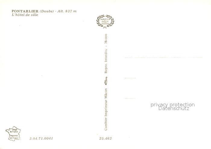 13743699 Pontarlier 25 Hotel de Ville postalisch nicht gelaufen Erhaltung siehe scans [FriedD77] Frie Katcode 11170025325462