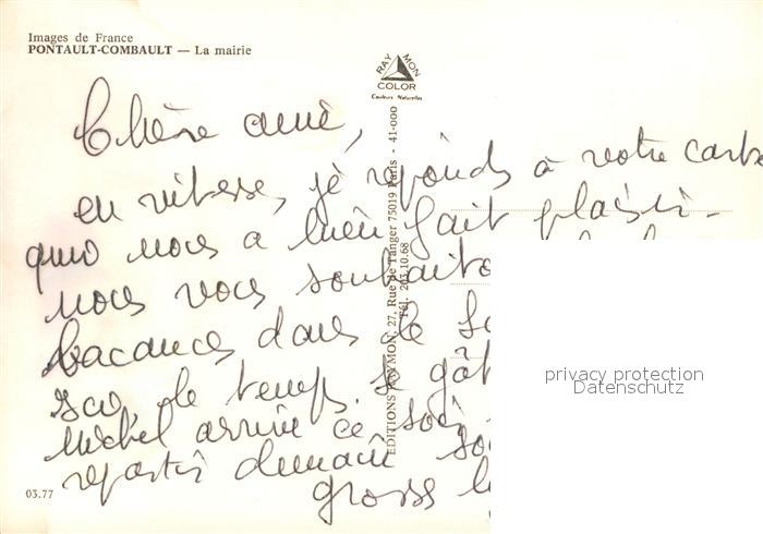 13582597 Pontault-Combault La mairie postalisch nicht gelaufen Erhaltung siehe scans [WerneD78] Wern Katcode 11170077577373