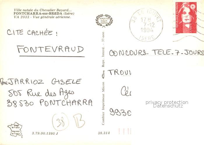 13144374 carte postale Pontcharra sur Breda Fliegeraufnahme postalisch gelaufen Erhaltung siehe scans [LiesaD40] KatCode: 11170038138314