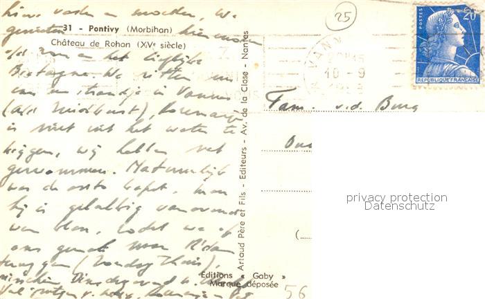 13505817 carte postale Pontivy Chateau de Rohon postalisch gelaufen Erhaltung siehe scans [FriedD77] KatCode: 11170056256178