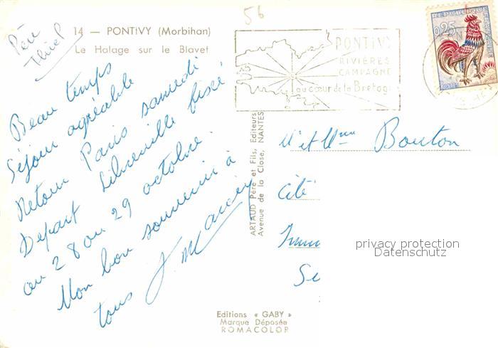12846482 carte postale Pontivy Halage sur le Blavet postalisch gelaufen Erhaltung siehe scans [KathaD81] KatCode: 11170056256178