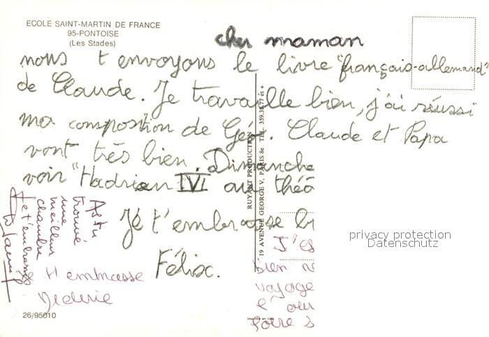 13373207 Pontoise Val-d Oise Ecole Saint Martin de France Les Stades vue aérienne postalisch nicht gelaufen Erhaltung siehe scans [FriedD77] KatCode: 11170095395500