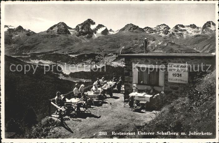 12029743 Pontresina Bergrestaurant Unterer Schafberg mit Julierkette Alpenpanorama postalisch nicht gelaufen Erhaltung siehe scans KatCode: 11470100335220