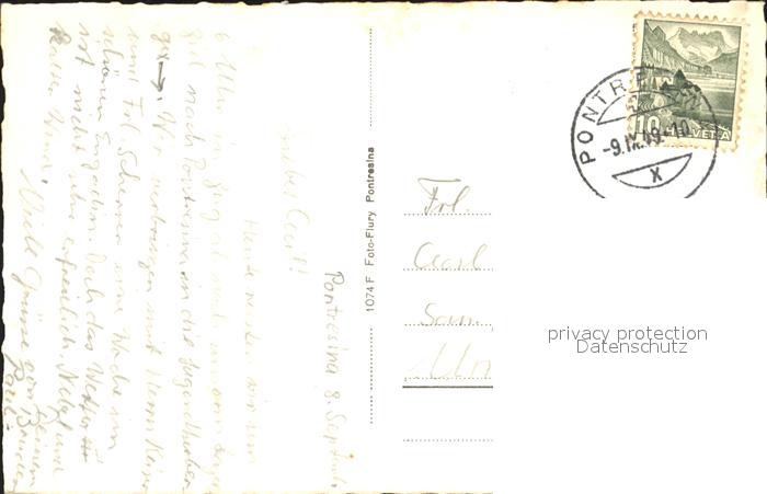 12031702 alte Postkarte Pontresina Blick ins Tal postalisch gelaufen Erhaltung siehe scans KatCode: 11470100335220