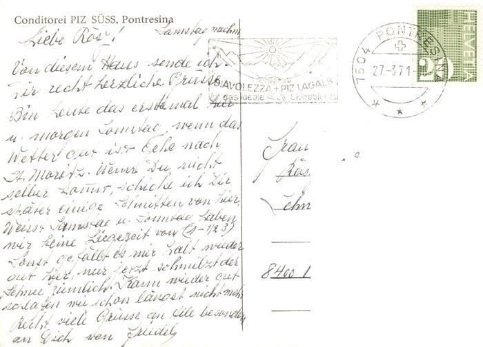 13871432 alte Postkarte Pontresina Conditorei Piz Suess postalisch gelaufen Erhaltung siehe scans [WerneD78] KatCode: 11470100335220