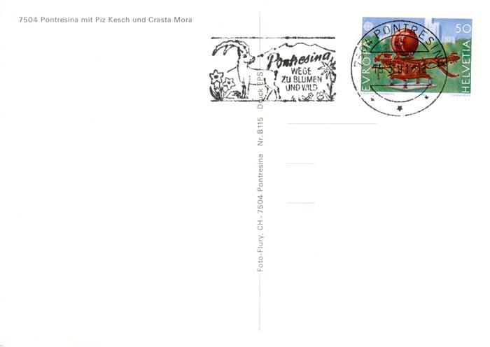 13882042 alte Postkarte Pontresina Fliegeraufnahme mit Piz Kesch und Crasta Mora postalisch gelaufen Erhaltung siehe scans [FriedD77] KatCode: 11470100335220