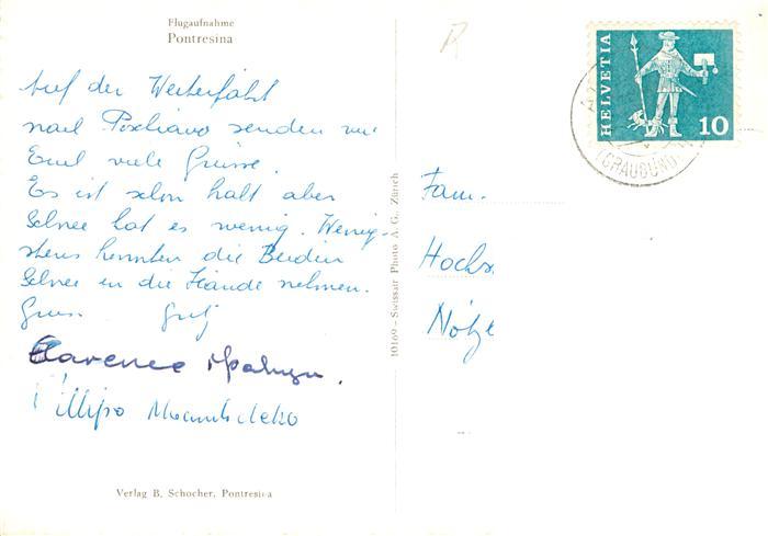 13889127 alte Postkarte Pontresina Fliegeraufnahme postalisch gelaufen Erhaltung siehe scans [WerneD78] KatCode: 11470100335220