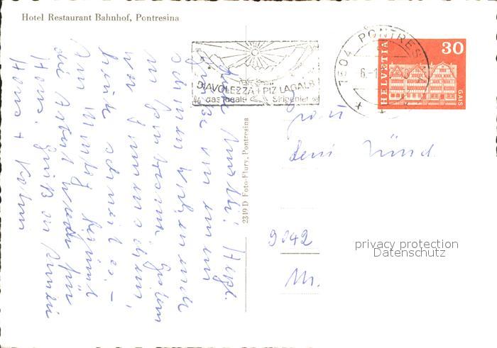 11649802 alte Postkarte Pontresina Hotel Restaurant Bahnhof postalisch gelaufen Erhaltung siehe scans KatCode: 11470100335220