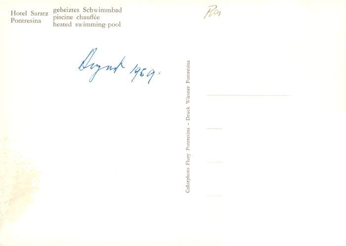 13883737 Pontresina Hotel Saratz Schwimmbad postalisch nicht gelaufen Erhaltung siehe scans [FriedD77] KatCode: 11470100335220