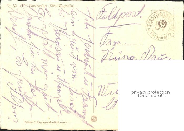 11649912 alte Postkarte Pontresina K?nstlerkarte postalisch gelaufen Feldpost Erhaltung siehe scans KatCode: 11470100335220