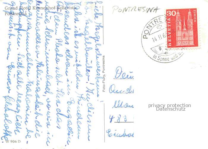 34146270 alte Postkarte Pontresina Maloja GR Grand Hotel Kronenhof Bellavista Eislaufbahn Wintersportplatz Alpen postalisch gelaufen Erhaltung siehe scans [FriedD77] KatCode: 11470100335220