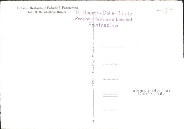 11645314 Pontresina Pension Restaurant Bahnhof postalisch nicht gelaufen Erhaltung siehe scans KatCode: 11470100335220