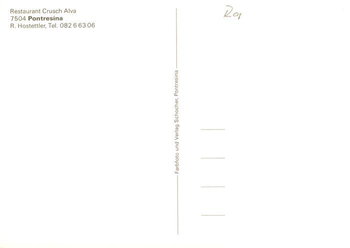 13883738 Pontresina Restaurant Crusch Alva postalisch nicht gelaufen Erhaltung siehe scans [FriedD77] KatCode: 11470100335220
