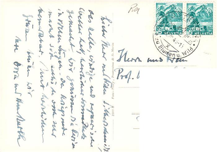 13883741 alte Postkarte Pontresina Spagnolaturm und Santa Maria Kirche Alpen postalisch gelaufen Erhaltung siehe scans [FriedD77] KatCode: 11470100335220