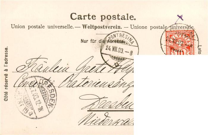13949984 alte Postkarte Pontresina und der Roseggletscher Berninagruppe Alpen postalisch gelaufen Erhaltung siehe scans [FriedD77] KatCode: 11470100335220