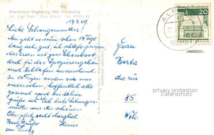 73301113 alte Postkarte Poppberg Mittelfranken Gaestehaus Wachburg postalisch gelaufen Erhaltung siehe scans [PaolaD17] KatCode: 11110009371116