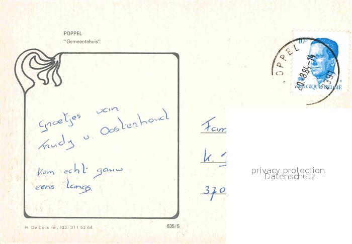 72890476 carte postale Poppel Gemeentehuis postalisch gelaufen Erhaltung siehe scans [WerneD78] KatCode: 11070013004096