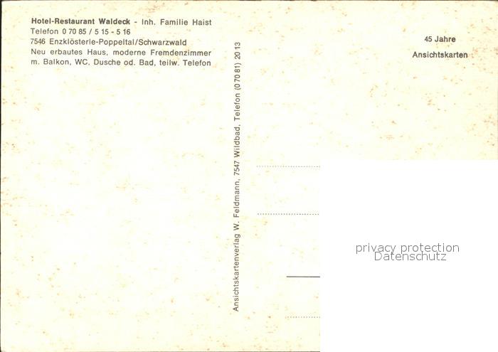72268565 Poppeltal Hotel Restaurant Waldeck Hirsch Turm Schwimmbad postalisch nicht gelaufen Erhaltung siehe scans KatCode: 11110008235025