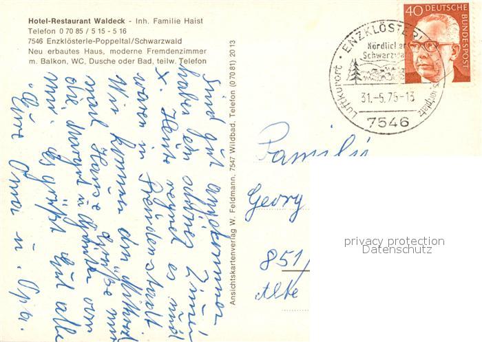 73041577 alte Postkarte Poppeltal Hotel Restaurant Waldeck im Schwarzwald postalisch gelaufen Erhaltung siehe scans [FriedD77] KatCode: 11110008235025