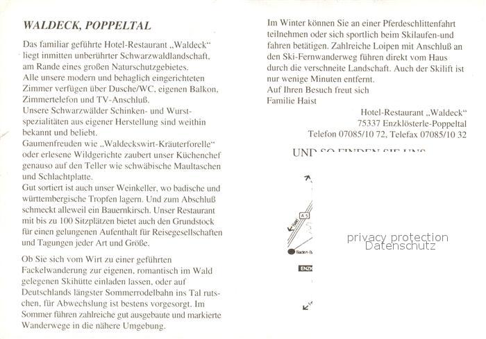 73323667 Poppeltal Hotel Restaurant Waldeck postalisch nicht gelaufen Werbekarte (keine Postkarte) Erhaltung siehe scans [FriedD77] KatCode: 11110008235025