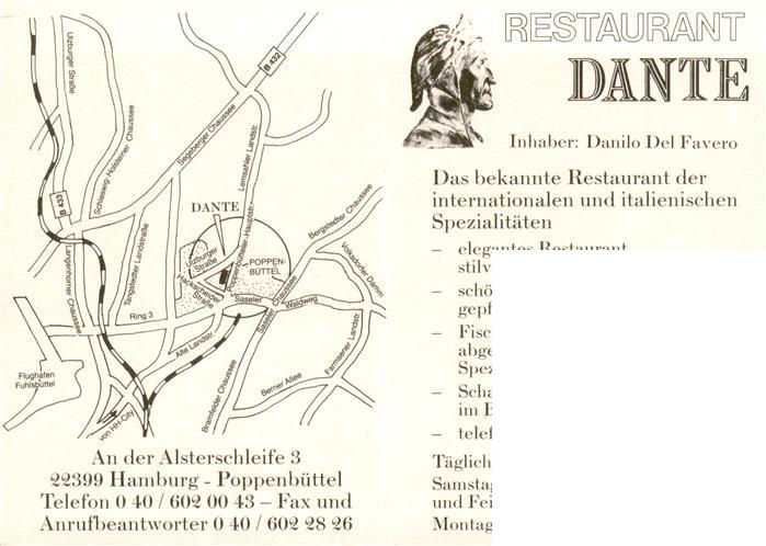 73882179 Poppenbuettel Restaurant Dante Gastraeume Terrasse postalisch nicht gelaufen Werbekarte (keine Postkarte) Erhaltung siehe scans [WerneD78] KatCode: 11110002000000