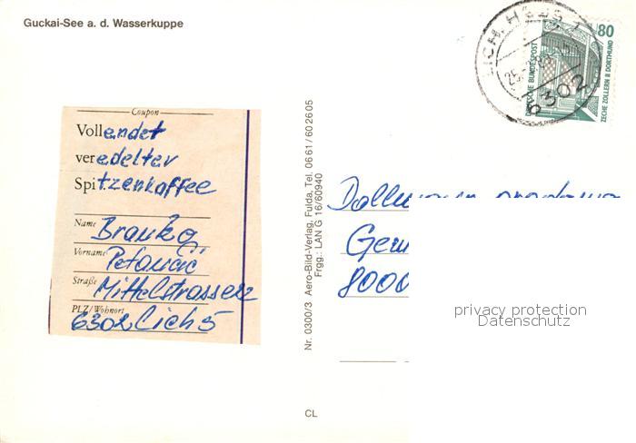 73162882 alte Postkarte Poppenhausen Rhoen Guckaisee an der Wasserkuppe Fliegeraufnahme postalisch gelaufen Erhaltung siehe scans [FriedD77] KatCode: 11110006631021