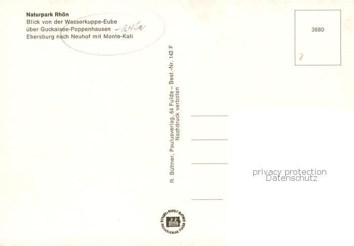 73835374 Poppenhausen Rhoen Panorama Naturpark Rhoen Blick von der Wasserkuppe-Eube Guckaisee Ebersburg postalisch nicht gelaufen Fliegeraufnahme Erhaltung siehe scans [FriedD77] KatCode: 11110006631021