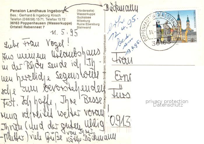73642142 alte Postkarte Poppenhausen Rhoen Pension Landhaus Ingeborg Panorama Burg Segelflugplatz postalisch gelaufen Erhaltung siehe scans [WerneD78] KatCode: 11110006631021