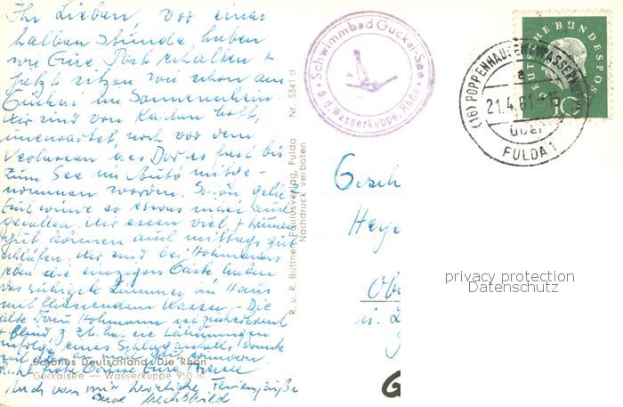 73764187 alte Postkarte Poppenhausen Rhoen Schwimmbad Guckai-See postalisch gelaufen Erhaltung siehe scans [LiesaD40] KatCode: 11110006631021