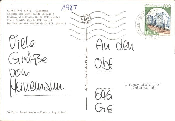 old postcard Poppi Schloss des Grafen Guidi postalisch gelaufen Erhaltung siehe scans
