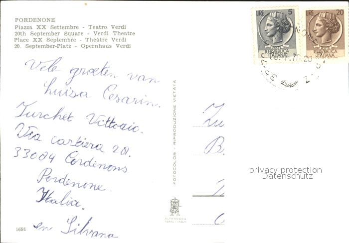 old postcard Pordenone Piazza XX Settembre Teatro Verdi postalisch gelaufen Erhaltung siehe scans