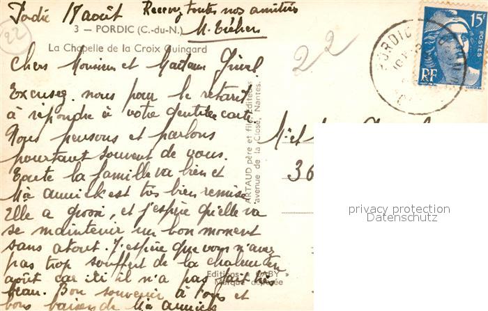 13575538 carte postale Pordic La Chapelle de la Croix Guingard postalisch gelaufen Erhaltung siehe scans [WerneD78] KatCode: 11170022422251