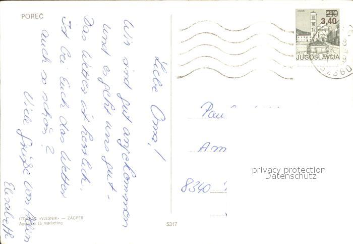 old postcard Porec Autocamp Lanterna Strandpartie Monument postalisch gelaufen Erhaltung siehe scans